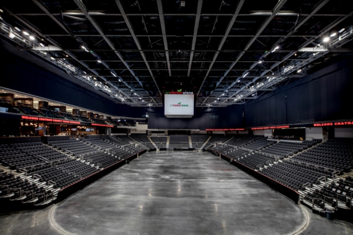 The state-of-the-art multipurpose arena in Savannah, GA, features approximately 10,000 seats, 12 luxury suites, 450 club seats, and a total parking capacity of 3,000 vehicles.