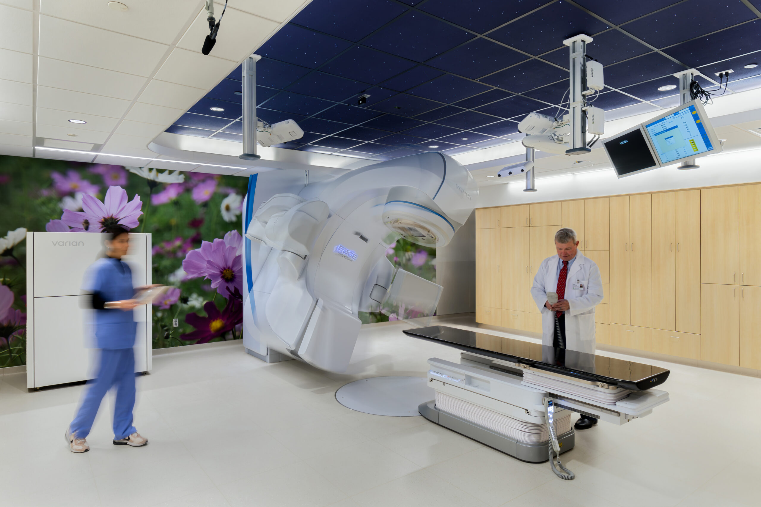 We managed the programming, design, construction, and relocation of the Radiology Oncology Clinic at the Burlington Campus. The $42M project encompassed the full relocation of two Varian Edge linear accelerators, one Philips Big Bore CT, and the design and build-out of a new HDR suite. Each procedure room required extensive equipment installations beyond the primary systems, including the Varian Identify system, an Elect CT mobile imaging ring, and a Respiratory Gait Scanner (RGSC). In addition to the clinical spaces, the project included exterior improvements featuring a new patient drop-off area, canopy, and entry ways, all constructed directly adjacent to an active helideck. The clinic also introduced a new lobby, reception area, administrative offices, and a clinical suite with 10 exam rooms. The project was completed in December 2024.