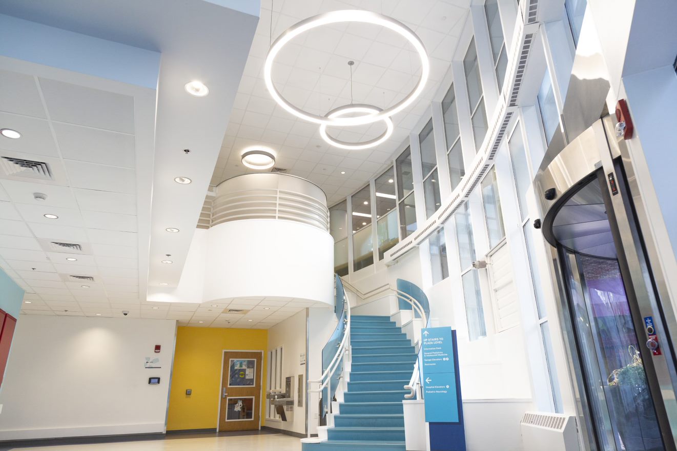 Multi phased renovation of a two-story lobby at the main entrance of Tufts Medical.